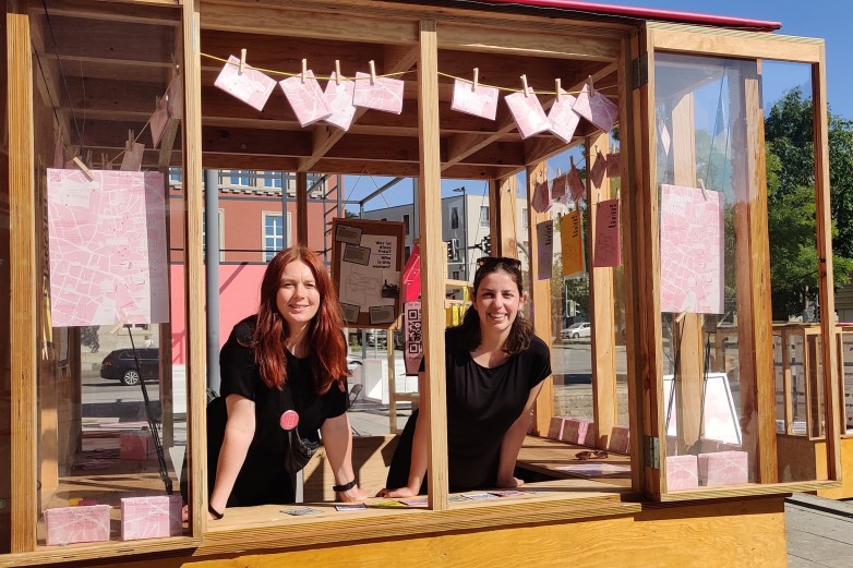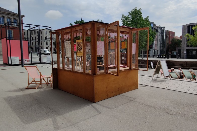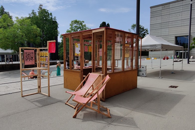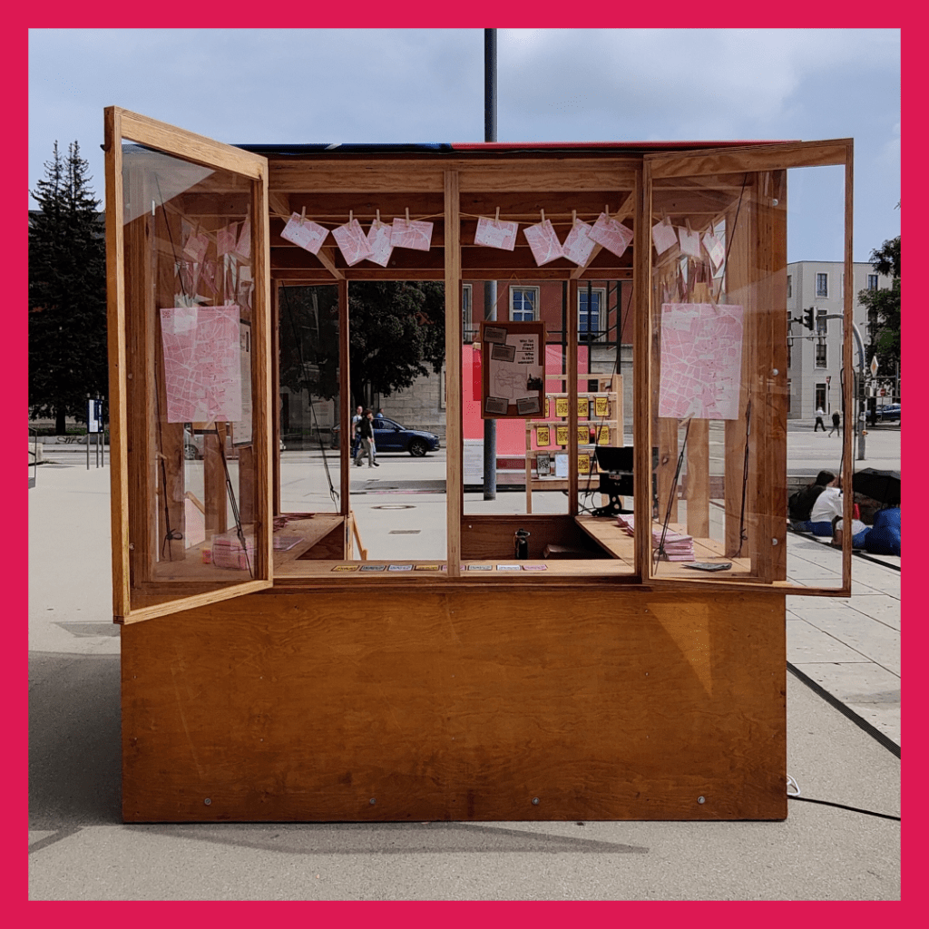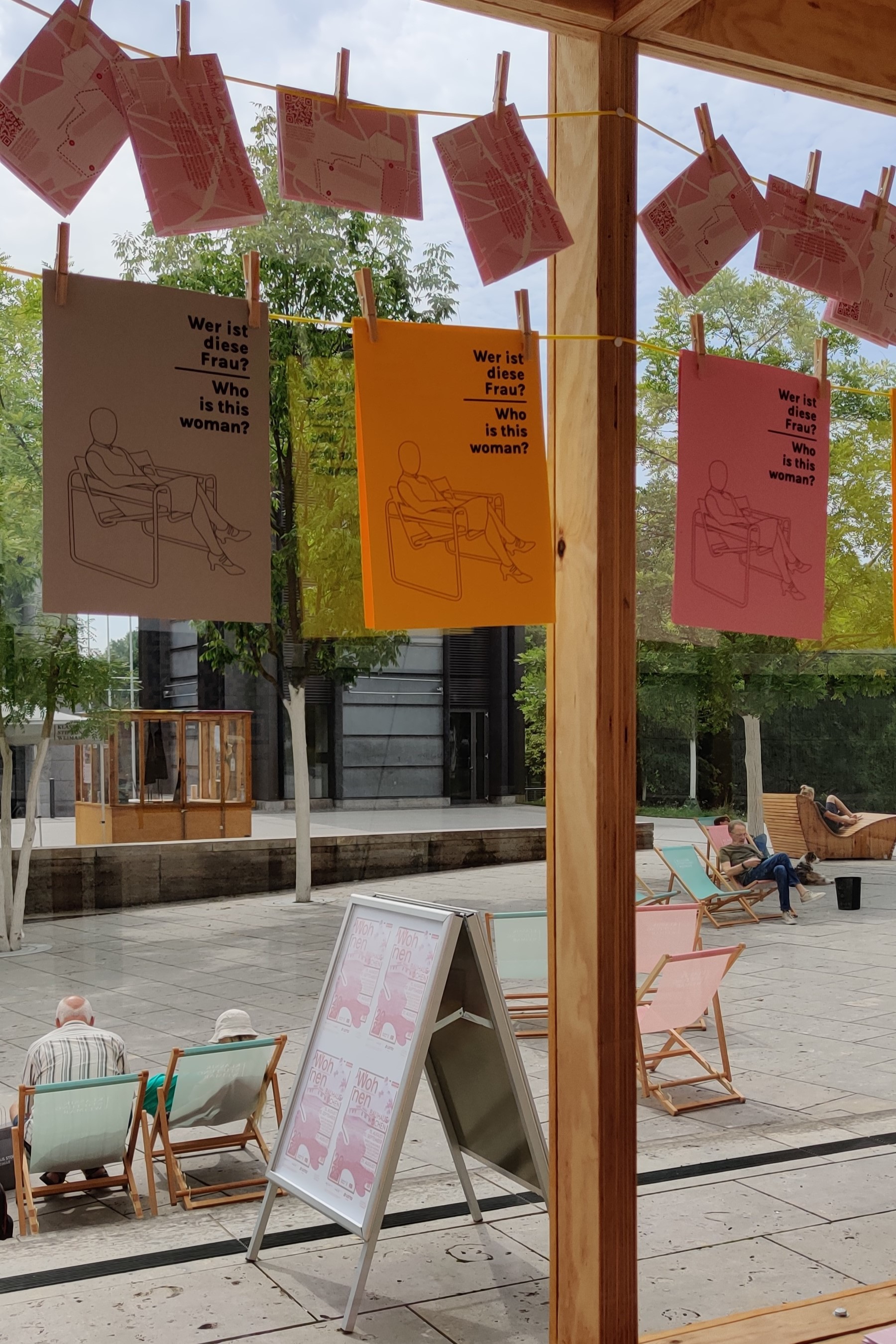 From 15th August – 10th September, the Klassik Stiftung Weimar, in cooperation with the Bauhaus-Universität Weimar and Kunstfest Weimar, recreated the Bauhaus Weeks which commemorates the 100th anniversary of the first major Bauhaus exhibition in Weimar with numerous workshops, performances and music. We were delighted to have been invited to take part and host a series of Open Library Days from the 15th-20th August inside one of the Bauhaus Cubes in front of the Bauhaus Museum Weimar, Stéphane-Hessel-Platz. Here, visitors could speak to us firsthand about joining our collection as well as learn more about our current FLINTA* Artists and past projects.