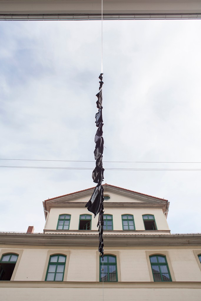 Public Laundry (2019). Installation in Weimar. Photos by Carlos Santos. Video Footage by Constanza Carvajal, Lukas Grubba, Miguel Buenrostro, Nathalia Azuero, and Carlos Santos. Donated by the artist.