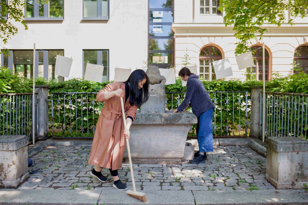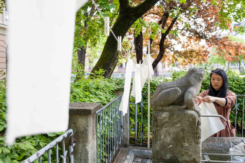 The work looks at cyclical actions as a place to re-center through a series of ritual washing sessions at the frog fountain in the old city center of Weimar.