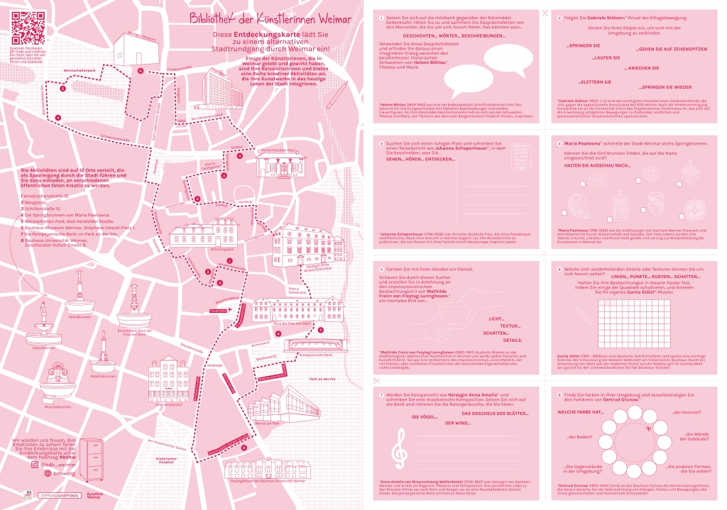 Entdeckungskarte Download Vorgestellten Künstlerinnen Vorgestellten Gebäude Bauhaus Musuem Jakobsplan Kirms-Krakow-Haus Wittumspalais Herzogin Anna Amalia Bibliothek Haus der Frau von Stein Hotel Amalienhof Mensa am Park Hauptgebäude der Bauhaus Universität Weimar Die Springbrunnen von Maria Pawlowna Share this: Click to share on X (Opens in new window) X Click to share on Facebook (Opens in new window) Facebook