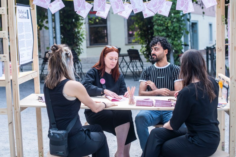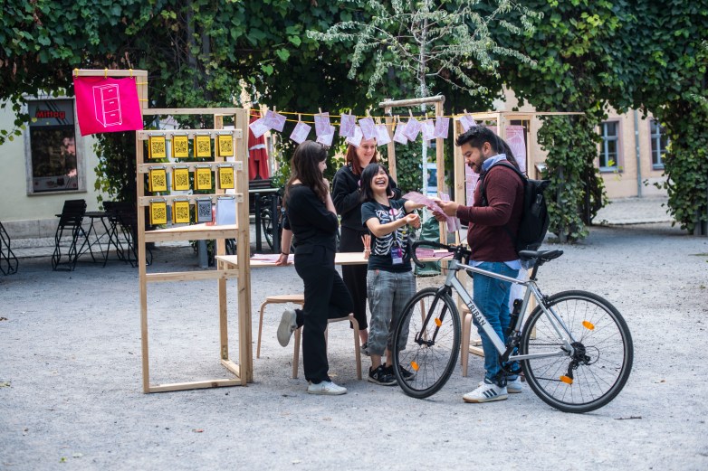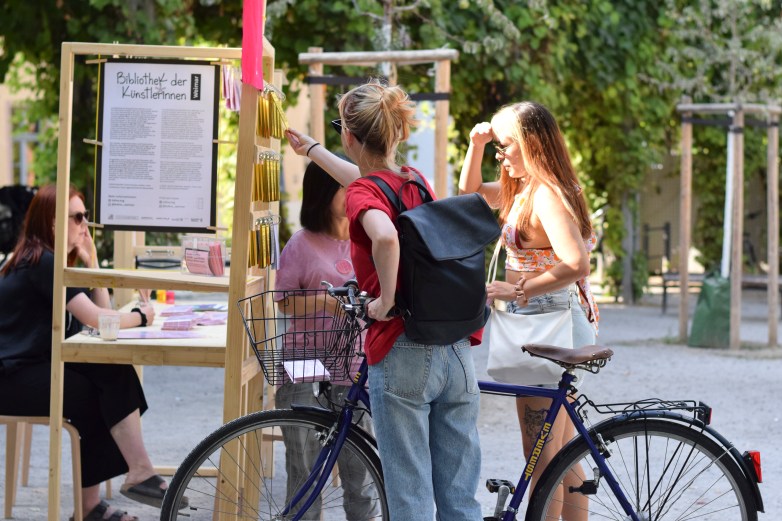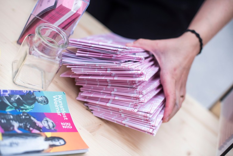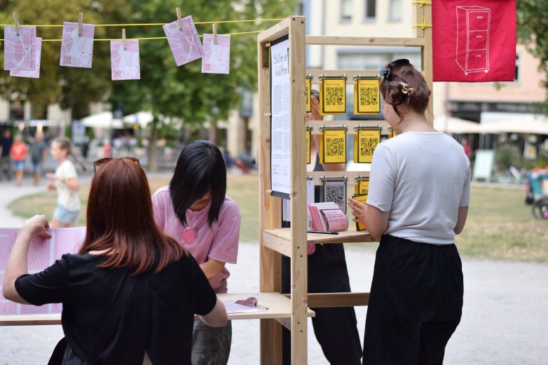 Coinciding with Kunstfest 2022, our second series of Pop-Up Open Library days took place over 2nd-4th September at Frauenplan, Weimar. Here visitors could pick-up an alternative map of Weimar composed of a range of creative activities inspired by some of Weimar’s past women artists, allowing their work to be enjoyed within the present-day life of the city. Following the ethos of our library which is to provide access and promote the creative work of FLINTA* artists, the map is open-source and can be freely downloaded and enjoyed by all.