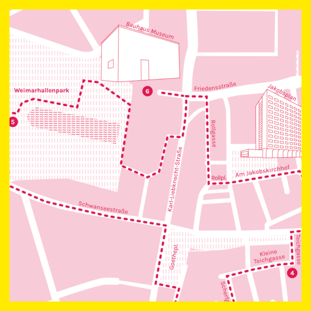 Anlässlich des Kunstfestes 2022 fand vom 2. bis 4. September unsere zweite Reihe der Tage der offenen Bibliothek am Frauenplan in Weimar statt. Hier konnten die Besucher*innen unsere Pop-Up-Bibliothek besuchen und einen Stadtplan abholen, der zu einer alternativen Stadtführung durch Weimar einlädt. Inspiriert von Künstlerinnen, die in Weimar gelebt und gewirkt haben, führt der Spaziergang zu acht verschiedenen Orten in der Stadt und gibt Anregung zu kreativen Aktivitäten, mit denen die Besucher*innen die Werke der Weimarer Künstlerinnen im heutigen Kontext der Stadt erleben können. Ganz im Sinne des Selbstverständnisses unserer Bibliothek, das kreative Schaffen von FLINTA* Künstler*innen zugänglich zu machen und zu fördern, kann die Karte frei heruntergeladen und von allen genutzt werden.