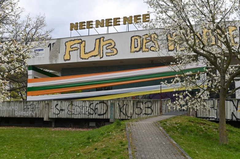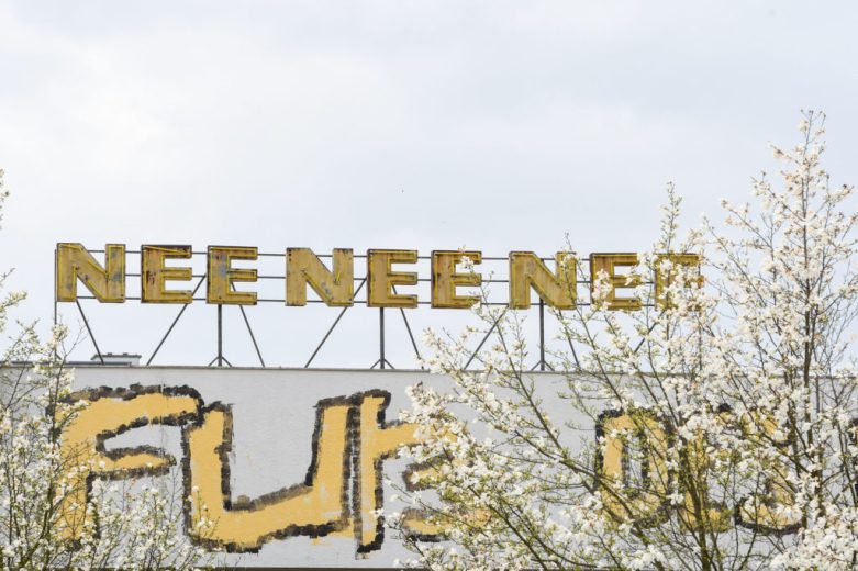 NEE NEE NEE (2021). Installtion of illuminated sign letters in Dresden. Images: Anja Schneider. Donated by the artist.